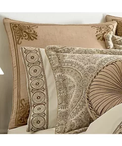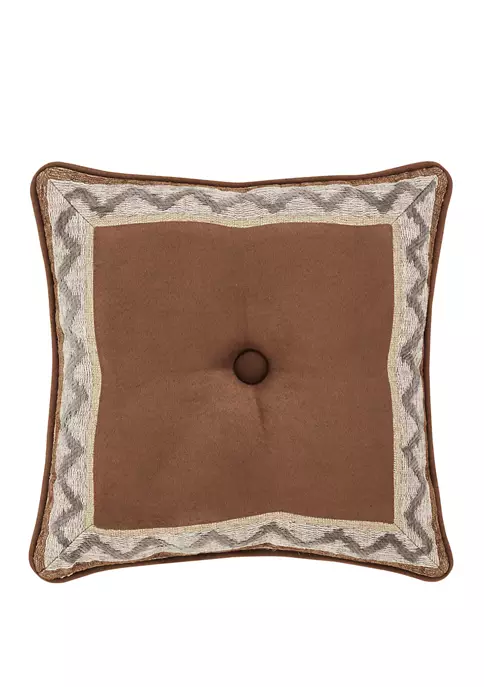 The Timber 18-inch Decorative Pillow is bordered with a textured jacquard in a zig-zag pattern combined with faux suede and button detail. This engineered pillow is the perfect addition to the bedding ensemble.