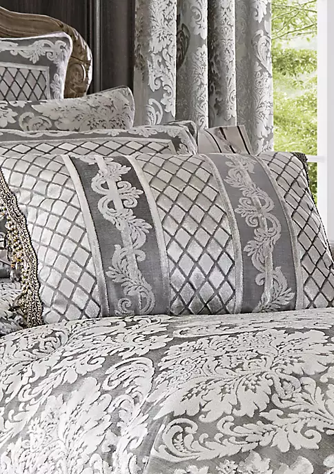 The face of the Bel Air Boudour pillow uses an elegant border fabric separated by an accented diamond fabric. Finished with a beautiful crystal trim, it’ll add a touch of scintillating appeal to your bedroom scene.