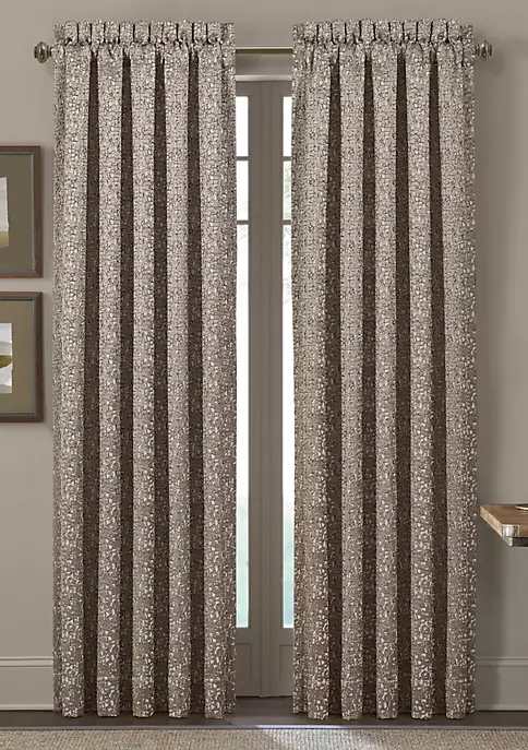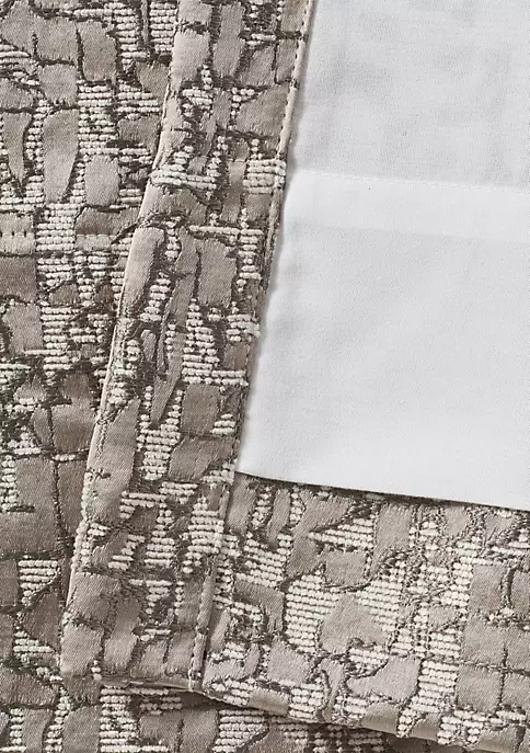 The cracked ice panel pair from J Queen New York uses contemporary jacquard to create a one of a kind look. The many shades of taupe and ivory are composed and cool. These lined panels drape beautifully on your window and can be used in any room of the home.
