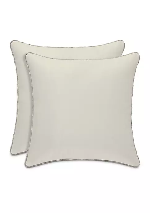 The 16-in. decorative pillow consists of a solid natural twill fabric. Finished by a diamond-beaded trim on all four sides, it’s perfect for lending an elegant touch to your favorite space.