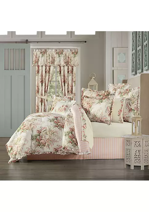 The Estelle – Coral Euro Sham is a soft and delicate print with flourishing blooms of muted coral and rose colors set upon a cream ground. This shabby chic look is adorn with ruffles around all sides and reverses to a classic stripe.
