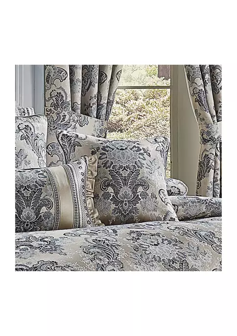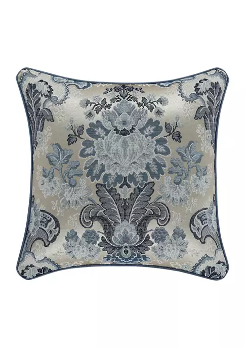 The Glendale 18-inch decorative throw pillow is exquisite with its bold use of indigo and silver tones. This beautiful square pillow is rich with a traditional woven jacquard floral design on the front and solid indigo satin on the back. This pillow is reversible, with a satin-finished look on each side. Finished with a 0.25-inch indigo piping. Pair this pillow with the Glendale bedding set by J. Queen New York for a complete look.