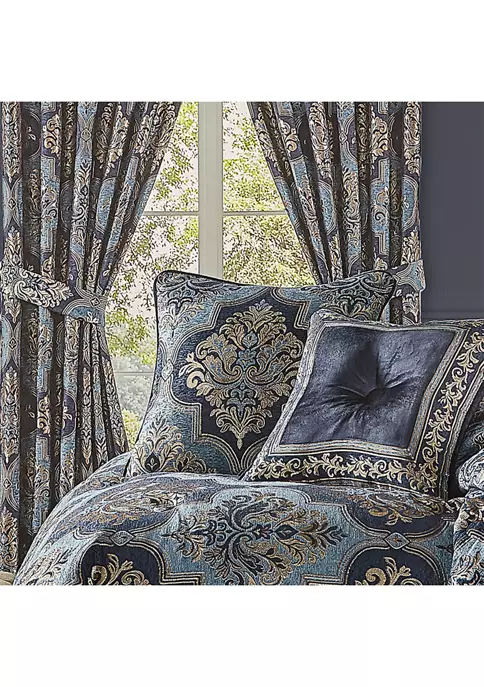 The Middlebury 20 Inch Square Decorative Throw Pillow is luxuriously designed with a woven indigo damask pattern and it reverses to a woven scroll stripe running in a vertical direction for added versatility. Pair this pillow with the Middlebury Bedding set for a completely elegant look.
