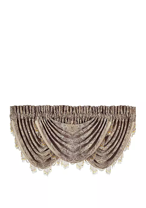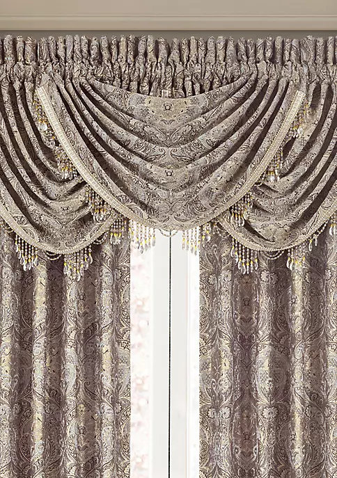 Create a custom look on your window with this elegant waterfall valance made of the same chenille damask fabric as the panels. These are trimmed with the crystal beaded tassels. In order to achieve the look in the photo, we suggest using three valances.