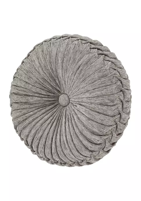 The Tiana Tufted Round Pillow uses a beautiful silver chenille fabric to create a one of a kind accent to this bedding ensemble. This 15″ unique round throw pillow is sewn by hand and it finished with a fabric covered button on both sides.