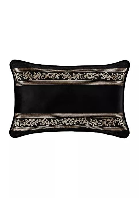The Windham Boudoir Pillow features a woven chenille scroll stripe running horizontally while reversing to a solid black velvet and framed with quarter-inch piping in black rayon cotton velvet. Pair this accent pillow with the Windham bedding set by for a complete luxe look.
